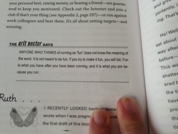 Recently I read the book Get Off Your Ass and Run!: A Tough-Love Running Program for Losing the Excuses and the Weight by Ruth Field aka The Grit Doctor.