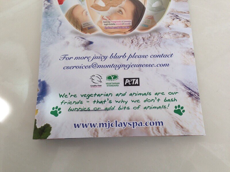 This is the weirdest animal testing messages I’ve ever seen on a product. (Seen on a Montagne Jeunesse clay mask package I received from Influenster.) For some reason, it doesn’t make me feel comforted, it just made me think about adding bits of animals to stuff. Ew…