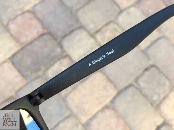 They have a ton of different styles and one of the things that cracks me up is the way they name the styles. And they put the name on the inside of one of the arms, so you’ll never forget. The pair I ordered was “A Ginger’s Soul”.