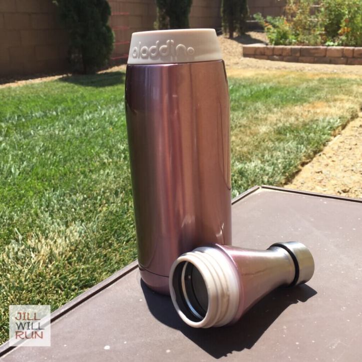 Okay, so you can put your water in whatever bottle you want. I just wanted to proclaim how happy I am with this new Aladdin water bottle I purchased at Target recently. The reason it’s so awesome is it screws apart just below the tapered part so it fits in the water dispenser on my fridge. This also makes it so you don’t basically need a funnel to target your liquids into it for filling. Then it screws back together tightly and keeps your drink cold for a long time. I haven’t had any leaking so far and I’m really happy with this bottle. I like the stainless steel bottle for this because I’ve heard that you shouldn’t put essential oils in plastic, so I’m taking a little precaution there.