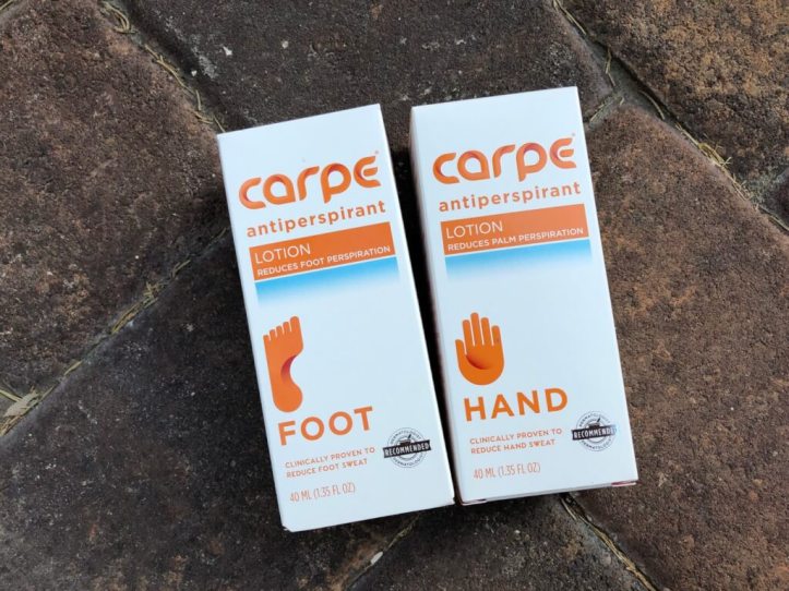 I got an email with the subject line of “Weird Review Product” a while ago and when I opened it up it said, “This is kind of weird, but I have a product I thought might be up your alley. It’s called Carpe, and it’s an antiperspirant lotion for hands and feet. I thought your audience might get a kick out of it – especially after seeing your SweatBlock post.”
