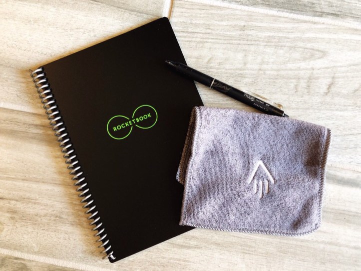 But first, let me explain what it is. Rocketbook makes a series of reusable notebooks. There is one that can be put in the microwave to erase the pages. But the Everlast, the one I have, can erase just by using some water on a cloth. You have to use a specific brand of pen on them, the Pilot Frixion series. Those pens are actually erasable on regular paper just by using the eraser on the back of the pen. But you’re probably going to get tired of rubbing it all over an entire page or notebook if you want to clear it out. Wiping it down with a slightly damp cloth is way faster/easier.