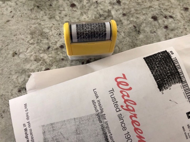 When I pick up prescriptions each month I’m always annoyed there is a lot of info printed on the paperwork about me. So before i get rid of it, I roll over it with this and VOILA! No more info.