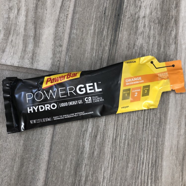 I should have taken a photo of this with something else for a size perspective, as it’s pretty huge! The beauty of a PowerBar PowerGel Hydro is that you don’t need to chug water with it. But they are about the size of 3 gel packs.