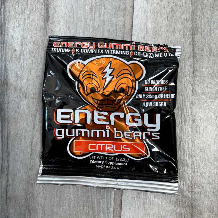 Movit Energy Gummies: It’s probably obvious, but they’re gummy bears with caffeine! I got two packs of these, the citrus flavor and the berry flavor.