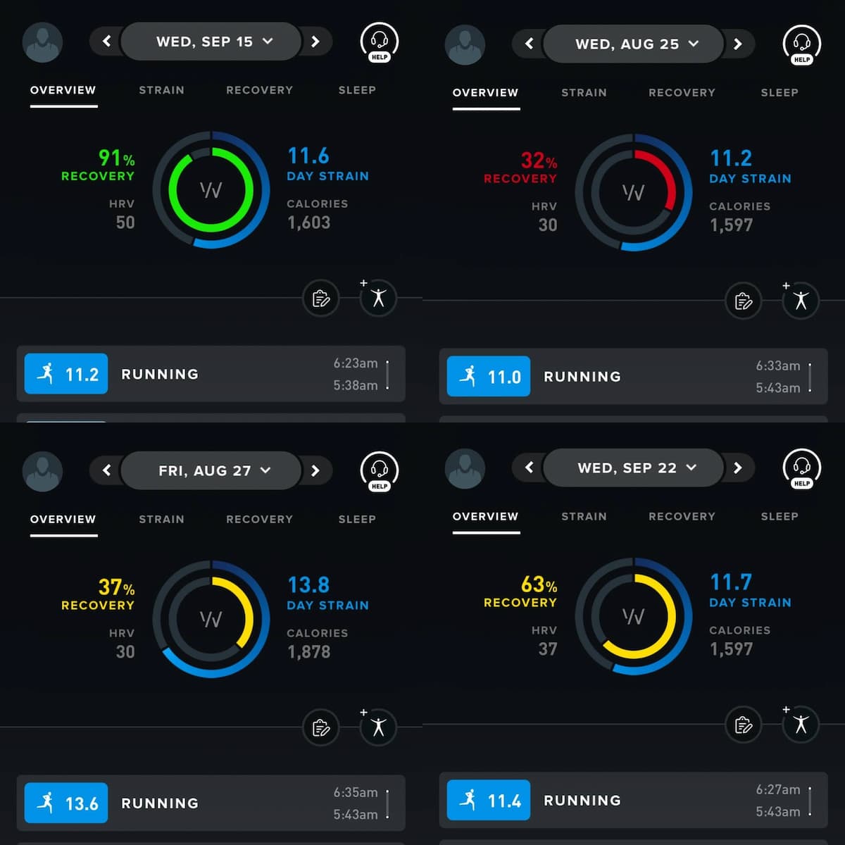 Yellow and red zones? Yeah, that’s how the app presents how well you are recovered. If you are all good, you’re in the green. If you are kind of lagging, you’re in the yellow. And if you are beat, you’re in the red. And I’m pretty much always in the yellow or red.