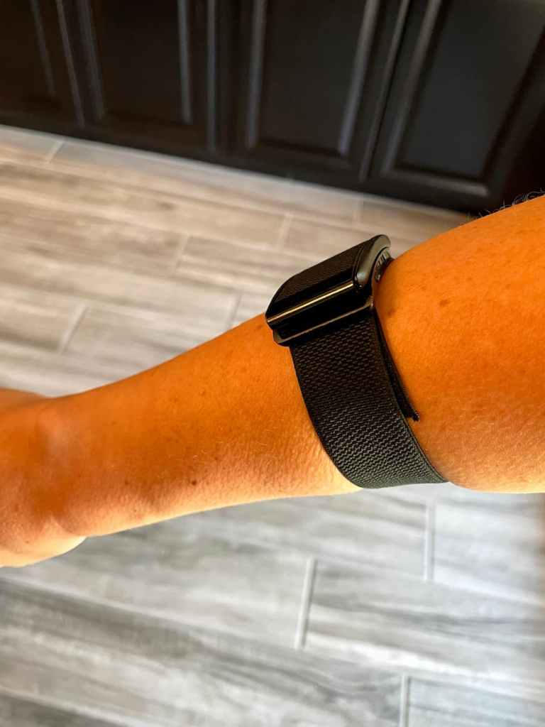 Even though it’s not a recommended spot, I tried wearing it on my ankle for a while. I liked that placement, but it low key looked like I was on some kind of release program and just waiting for my parole office to pop in to see how things were going. Okay, not that extreme… but still, you get the idea. And after I wore it on my ankle for a week straight, I had a sore spot on my leg where the sensor was. I knew that had to move.