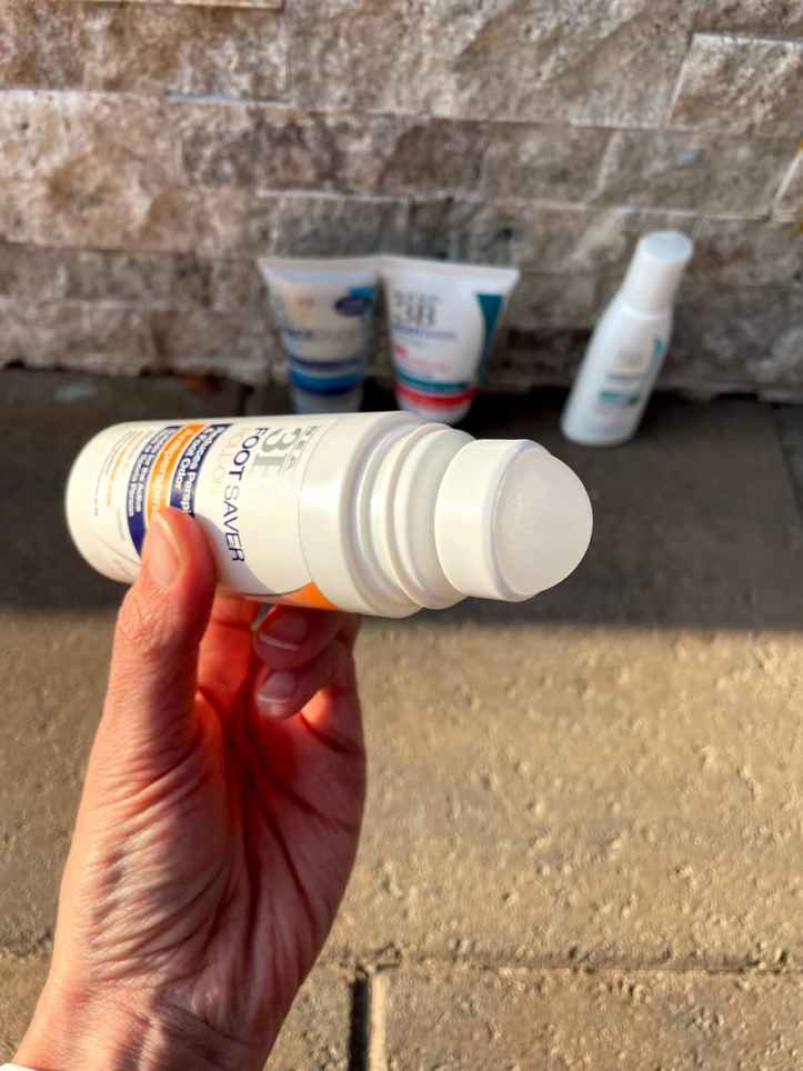 I don’t feel like my feet sweat an abnormal amount. But I do tend to run sockless when running on my treadmill. I have an old pair of Topo Tribute (they don’t even make this shoe anymore!) that I gravitate to for all my treadmill miles and they’re just even more comfy without socks. So rolling the Foot Saver on my feet before seems to keep my feet drier.
